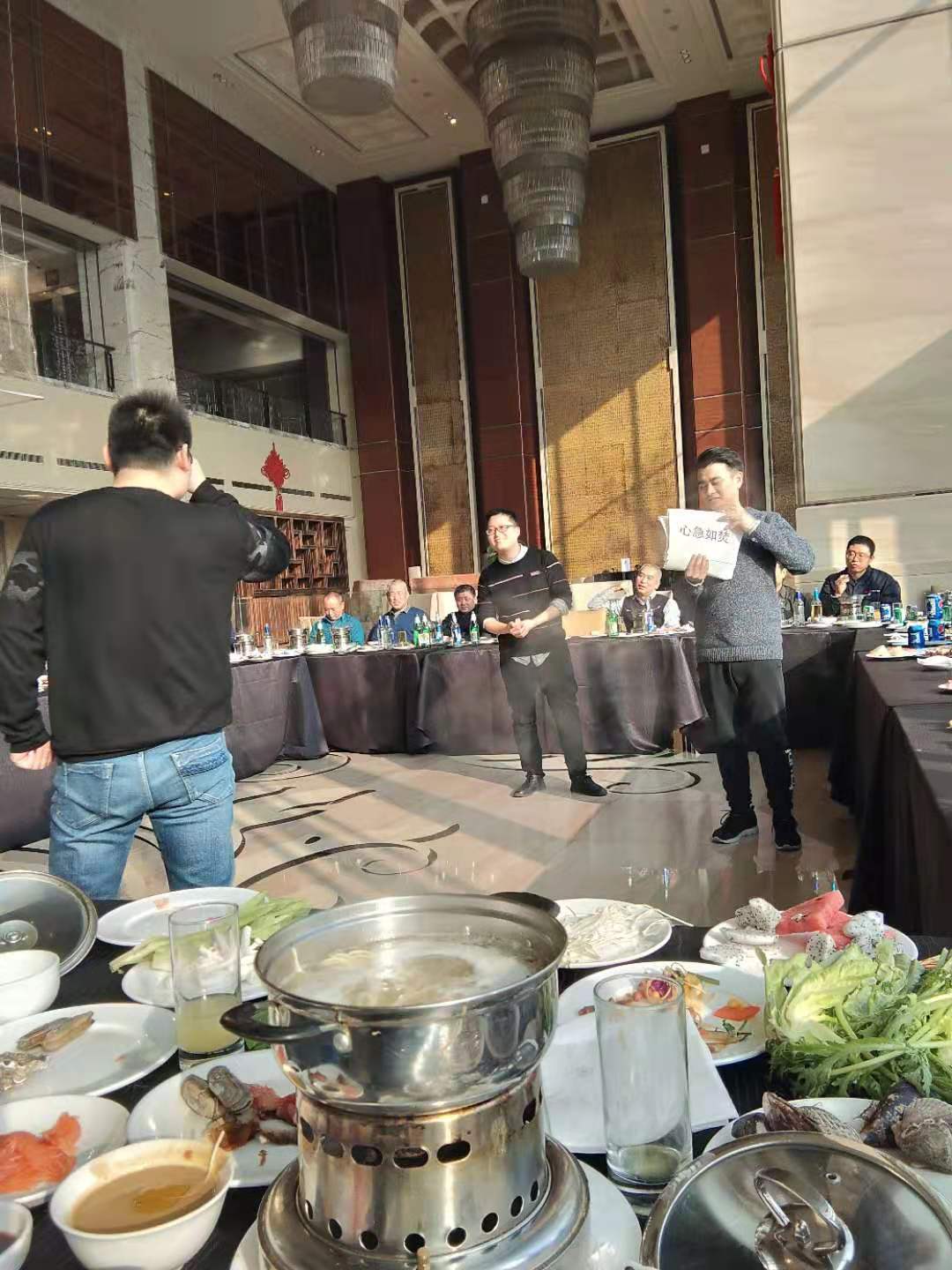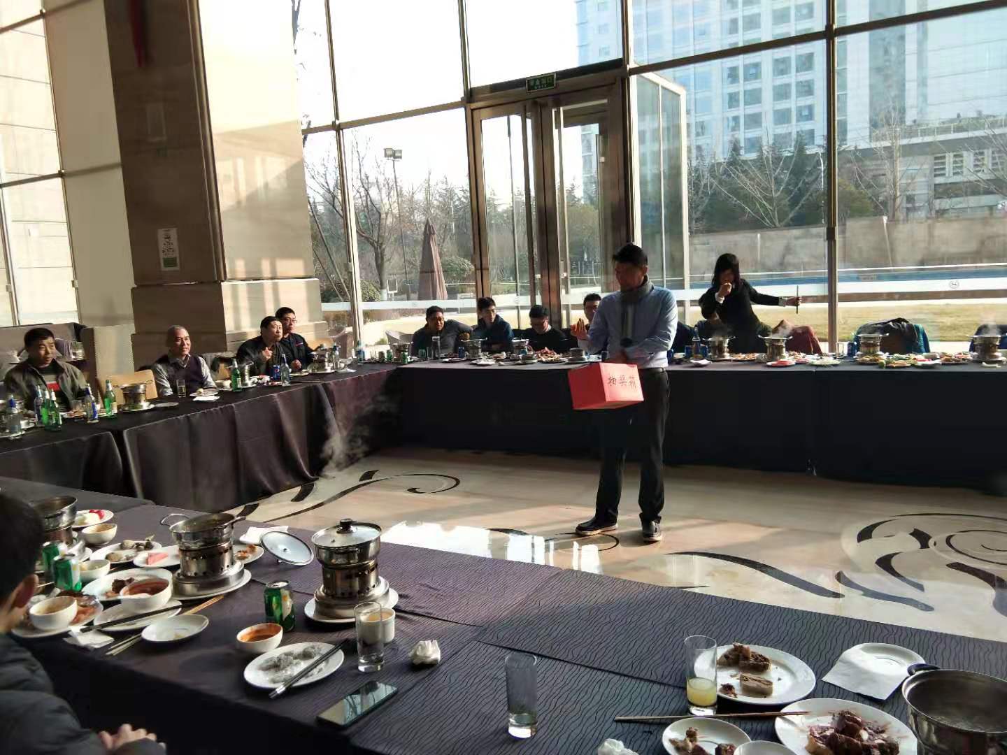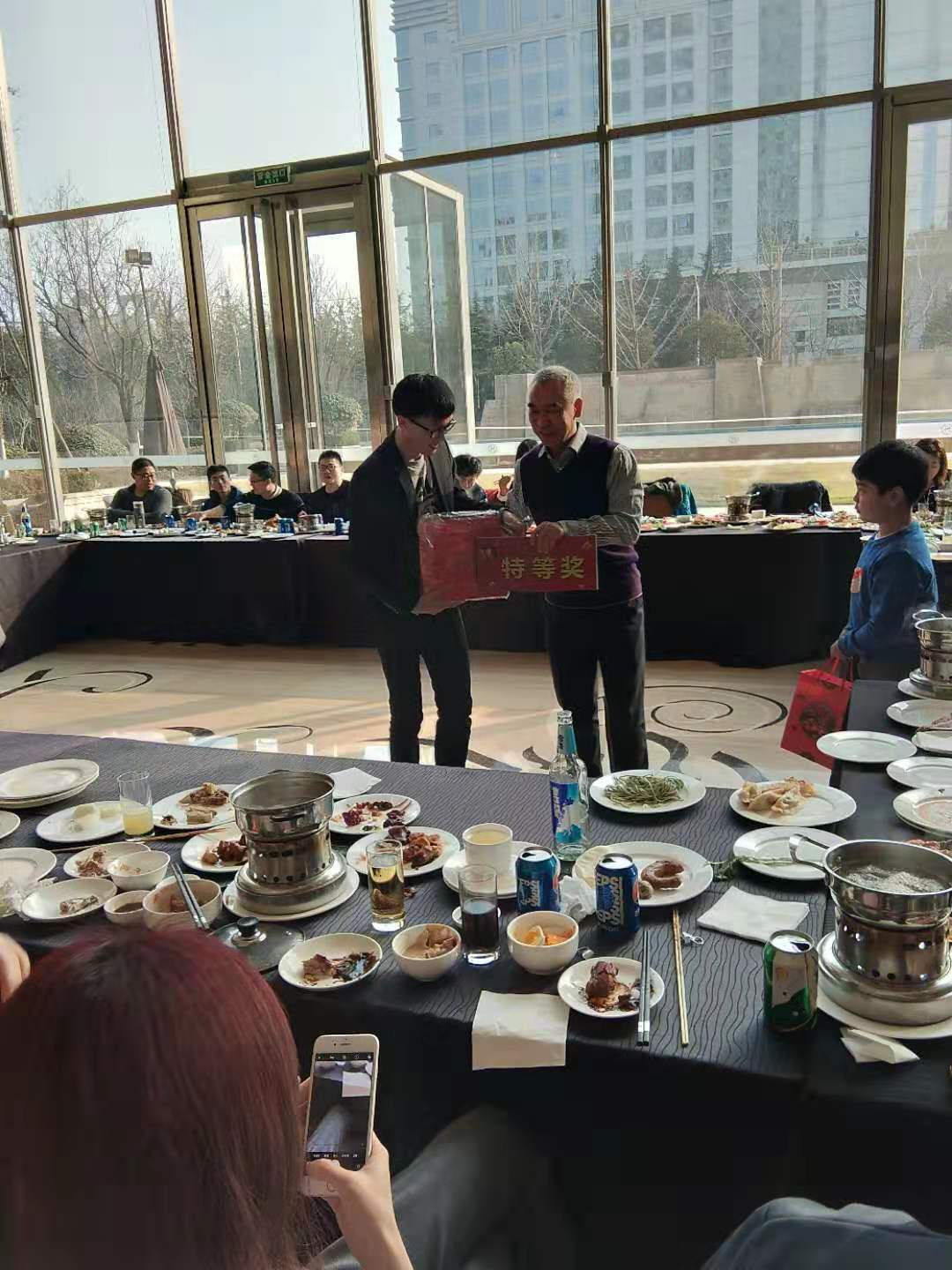 會(huì )議結束后公司進(jìn)行了聚餐,大家歡聚一堂,分別進(jìn)行了抽獎互動(dòng)及游戲環(huán)節,同時(shí)公司領(lǐng)導也對年會(huì )期間仍?shī)^斗在工作崗位上的同事表示了感謝!