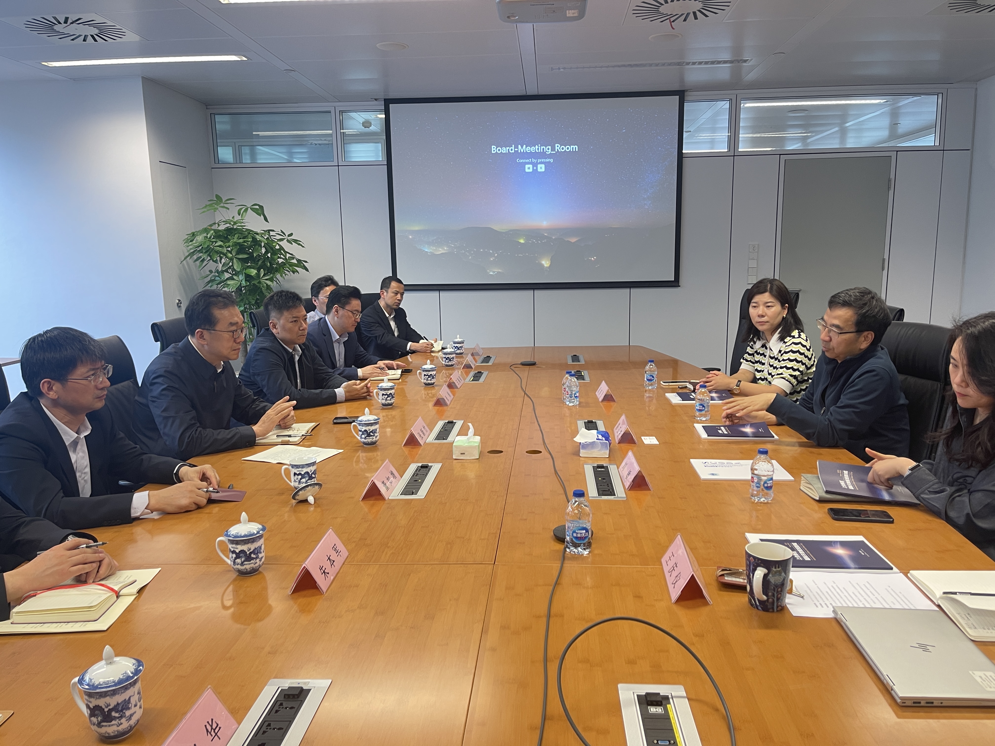 5月8日,應青島膠州上合示范區管委邀請,我司董事長(cháng)張曉蘭陪同青島市委常委、上合示范區書(shū)記、膠州市委書(shū)記張新竹,國家商務(wù)部歐亞司副司長(cháng)張棟,膠州市委常委、副市長(cháng)董如增,膠州市副市長(cháng)王棟梁等領(lǐng)導,一同拜訪(fǎng)世界500工業(yè)企業(yè)博世集團中國總部總裁陳玉東及相關(guān)領(lǐng)導。