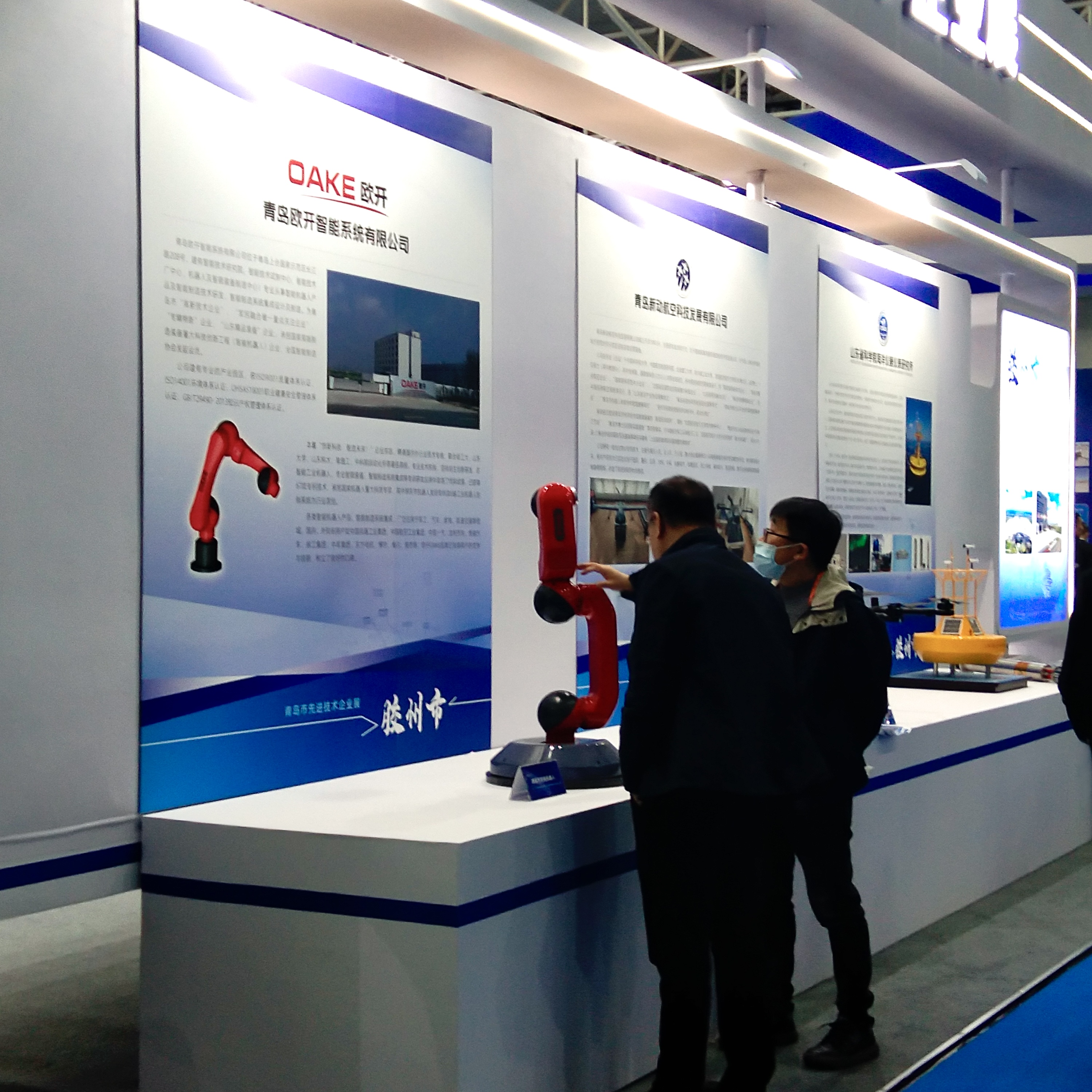 交流展會(huì )為期3天,我司作為青島膠州企業(yè)代表在交流會(huì )現場(chǎng)設置展位。展位展出我司專(zhuān)利——球關(guān)節智能機器人。該機器人為國家高端制造裝備重大科技創(chuàng )新工程(智能機器人)項目——面向裝配作業(yè)的人機協(xié)作型雙臂七自由度機器人,球形關(guān)節機器人發(fā)明專(zhuān)利及6軸工業(yè)機器人控制系統為行業(yè)首創(chuàng ),該項目技術(shù)為世界領(lǐng)先水平,填補國內空白。我司的球關(guān)節智能機器人吸引各界專(zhuān)業(yè)人士駐足觀(guān)看,了解學(xué)習。