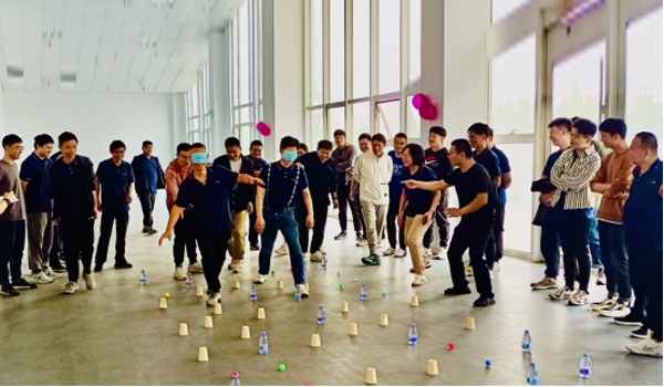 這個(gè)游戲非??简瀳F隊協(xié)作和指揮能力。6組每組需要選出一名代表兩組進(jìn)行PK,游戲中,各組隊員需緊密配合指揮本組人員避開(kāi)障礙物穿越雷區。最終,最快到達終點(diǎn)且避雷最多的小組將獲得冠軍。經(jīng)過(guò)激烈的角逐,最終決出了冠軍組,大家為他們歡呼,分享著(zhù)勝利的喜悅。